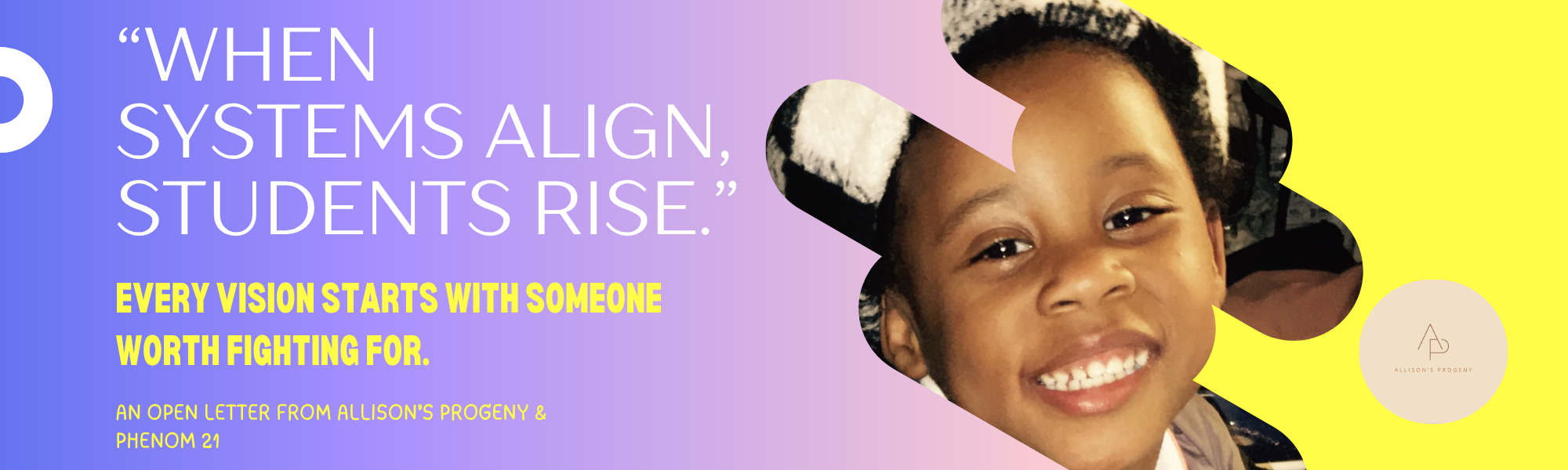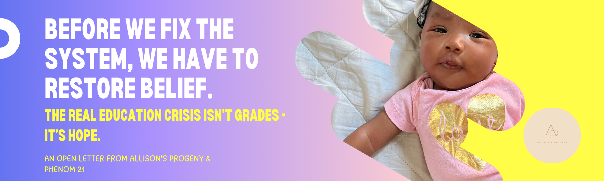 Pt. 2/7 An Open Letter from Allison’s Progeny & Phenom 21™ Dear Community, Let’s talk about the real education crisis. It isn’t test scores, truancy, or even funding. I
